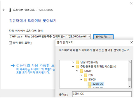 [32비트 운영체제] C:\Program Files (x86)\주민등록증 진위확인시스템3.0\Driver\ID600\32bit_OS