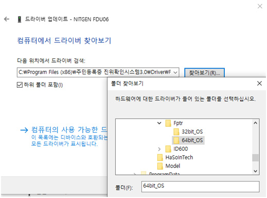 [64비트 운영체제] C:\Program Files (x86)\주민등록증 진위확인시스템3.0\Driver\Fptr\64bit_OS